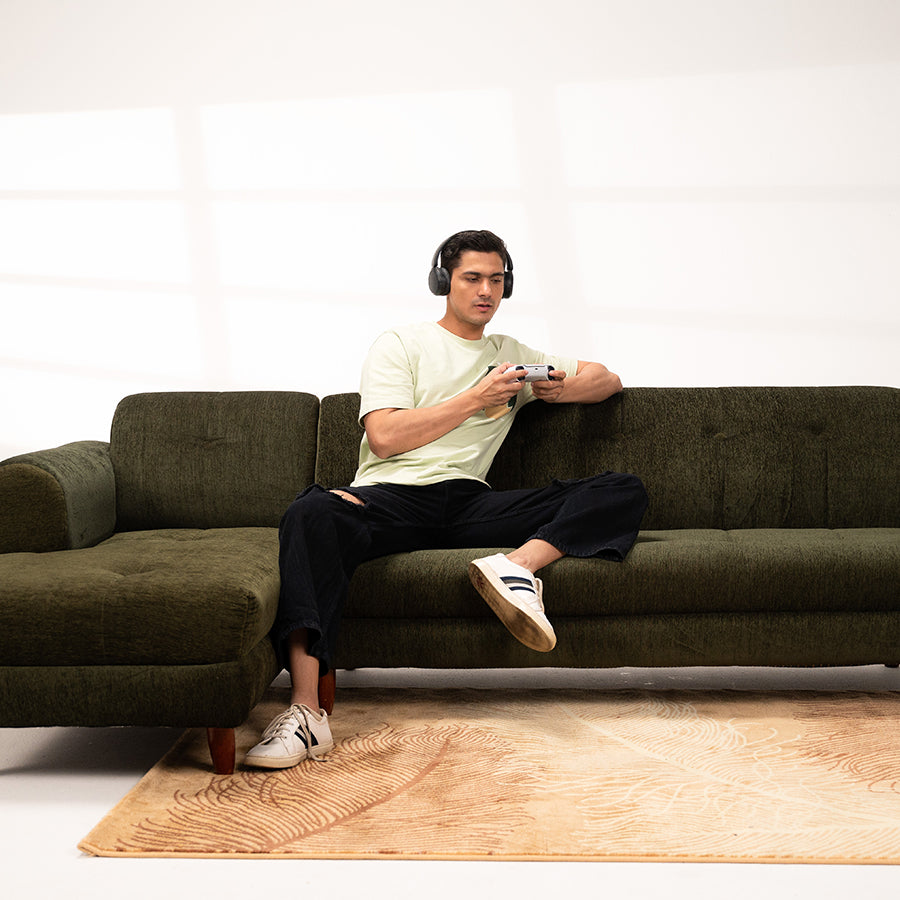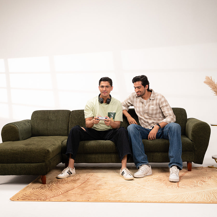 Milan 6 Seater Sofa Left Corner- ( Premium Molfino Fabric- Green )