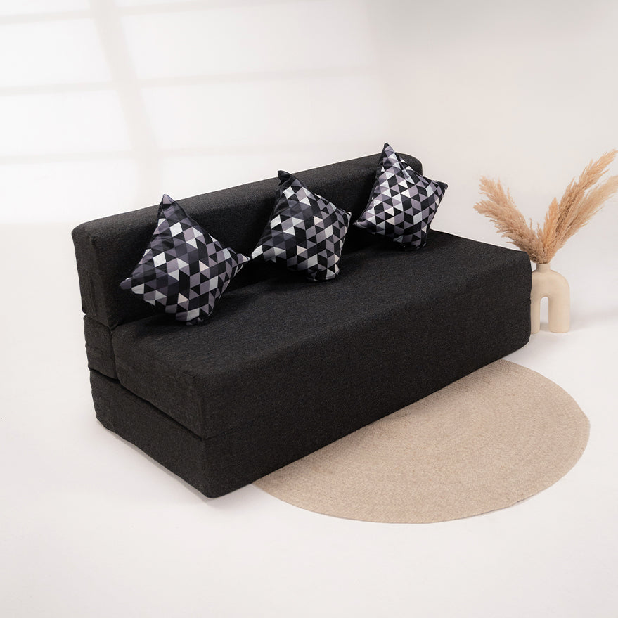 Rejoice Sofa Cum Bed - 3 Seater, 3 Printed Cushions ( Jute Fabric, Dark Grey )