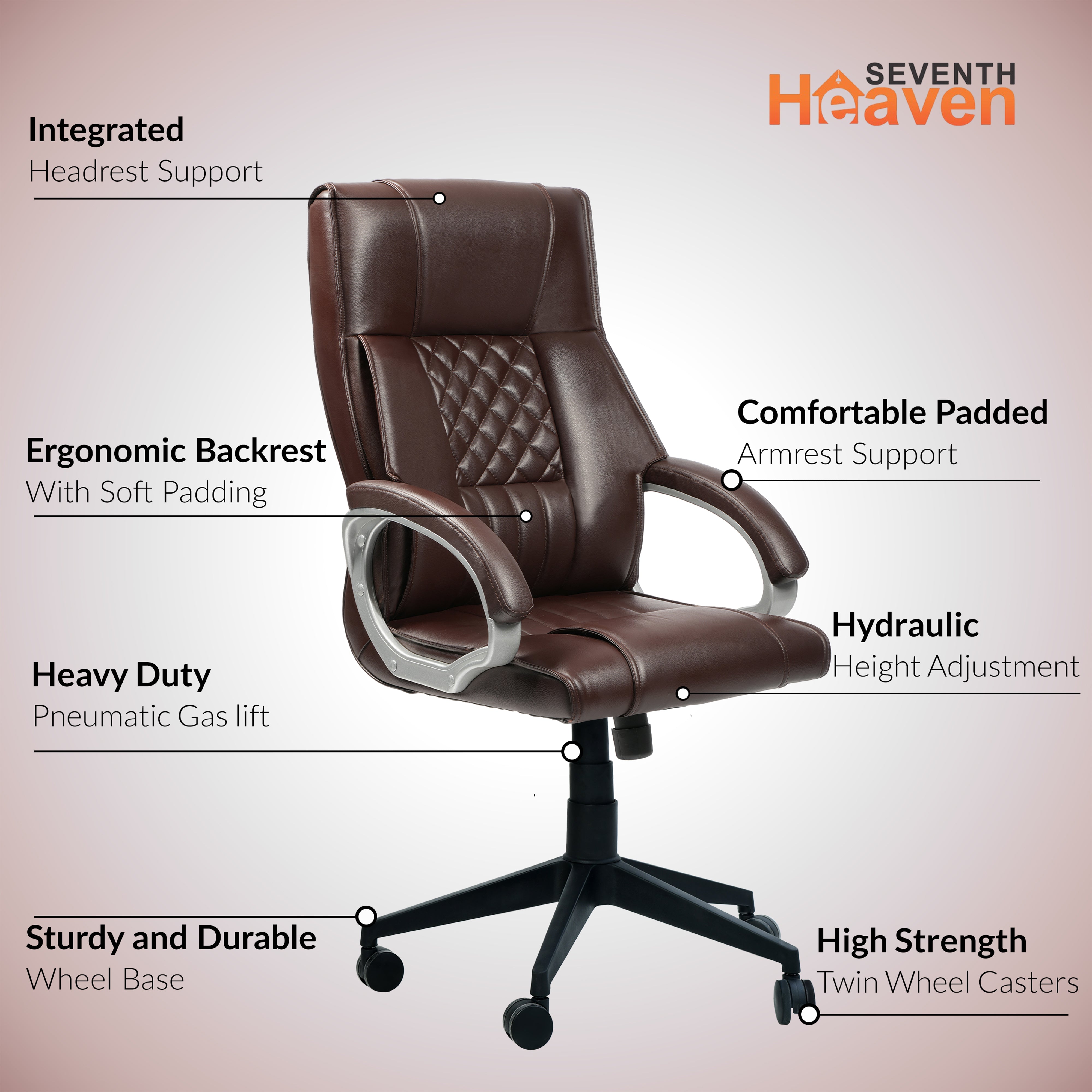 The Seventh Heaven Office Chair will improve your workspace since it is designed to be as comfortable and supportive as it can be. The ergonomic design of this chair relieves pressure and promotes better posture for prolonged work days. Due to its adjustability, you can customise the height and tilt to design a personalized sitting experience. Durable use and longevity are assured by its sturdy build and comfortable padding. Its multiuse, light, and compact structure makes it suitable for use in any office setting. This multi-use office chair, whether for home or work, provides great comfort and flexibility to enhance productivity.