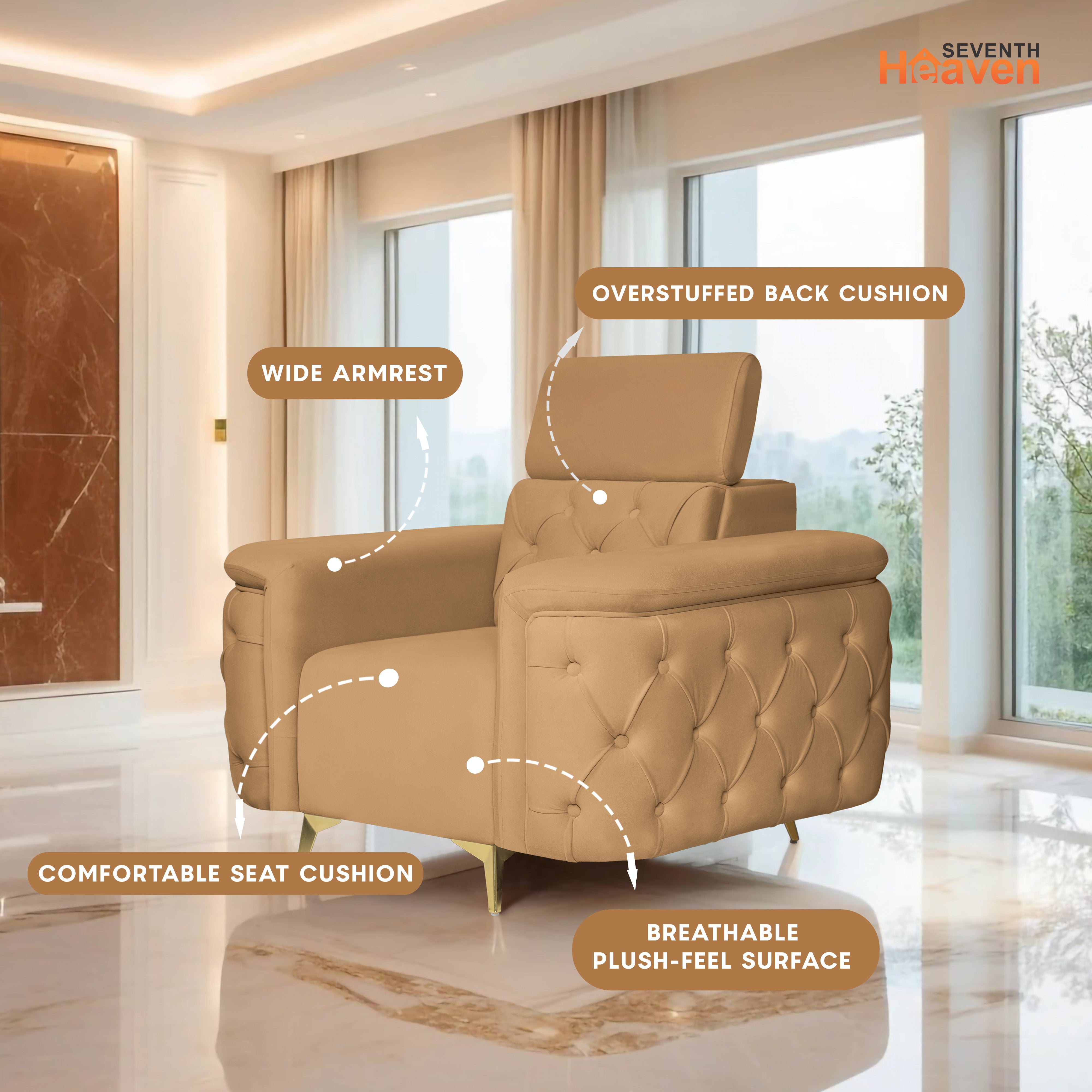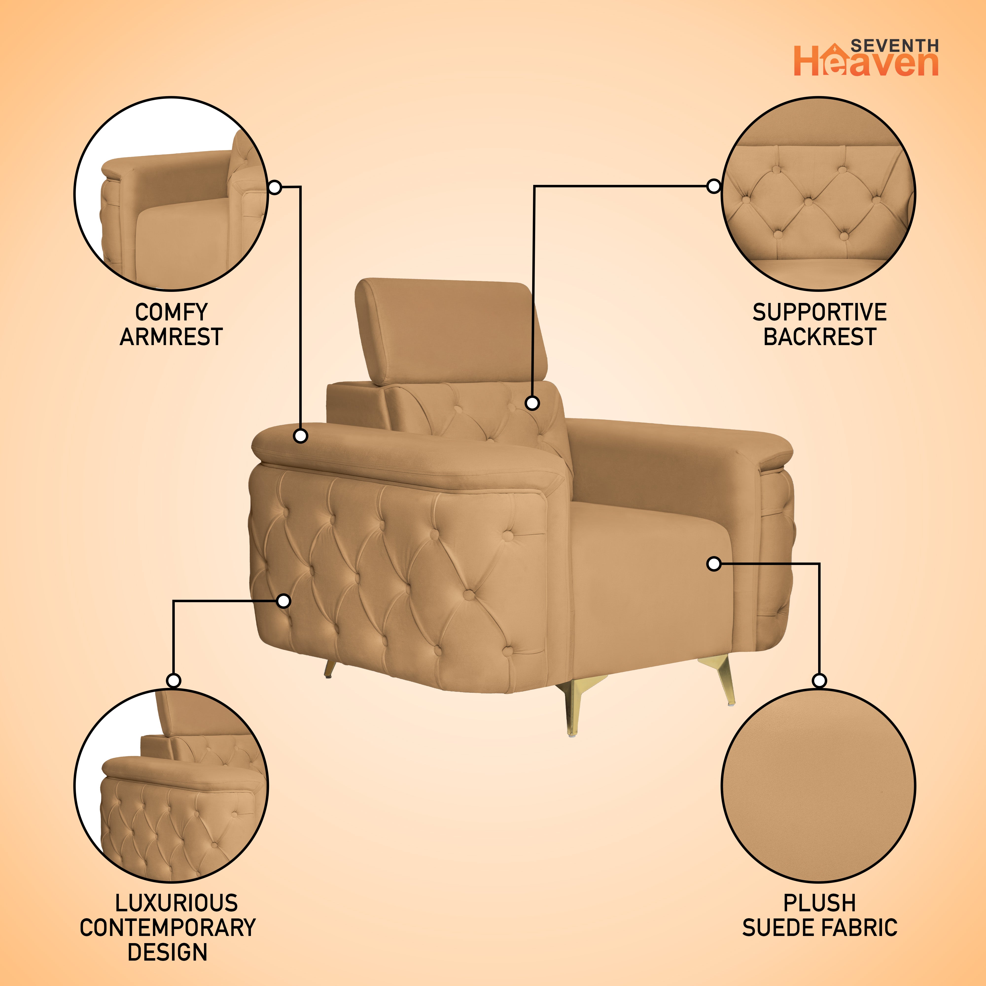 Rome 1 Seater Sofa- ( Plush Suede Fabric- Beige )