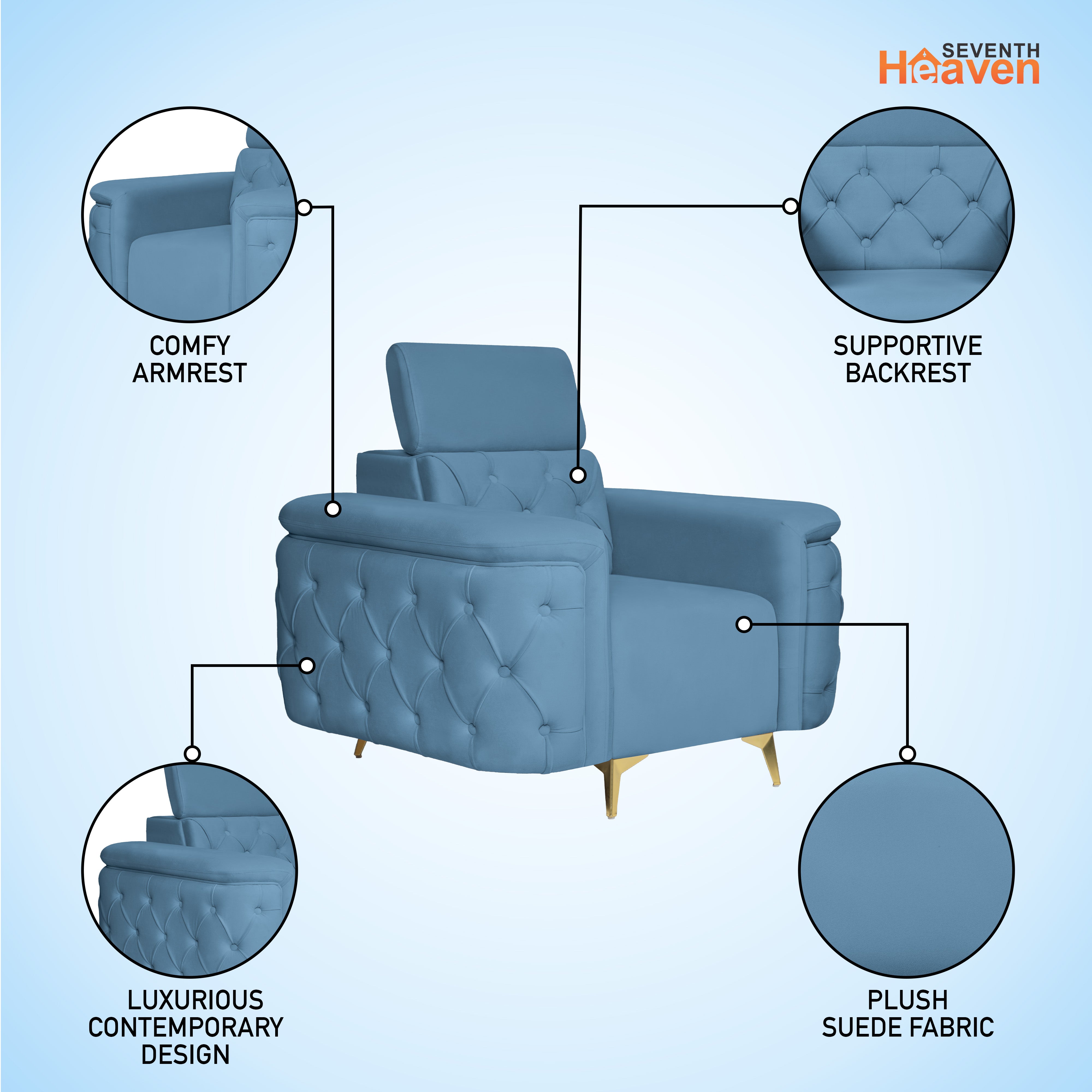 Rome 1 Seater Sofa- ( Plush Suede Fabric- Sky Blue )