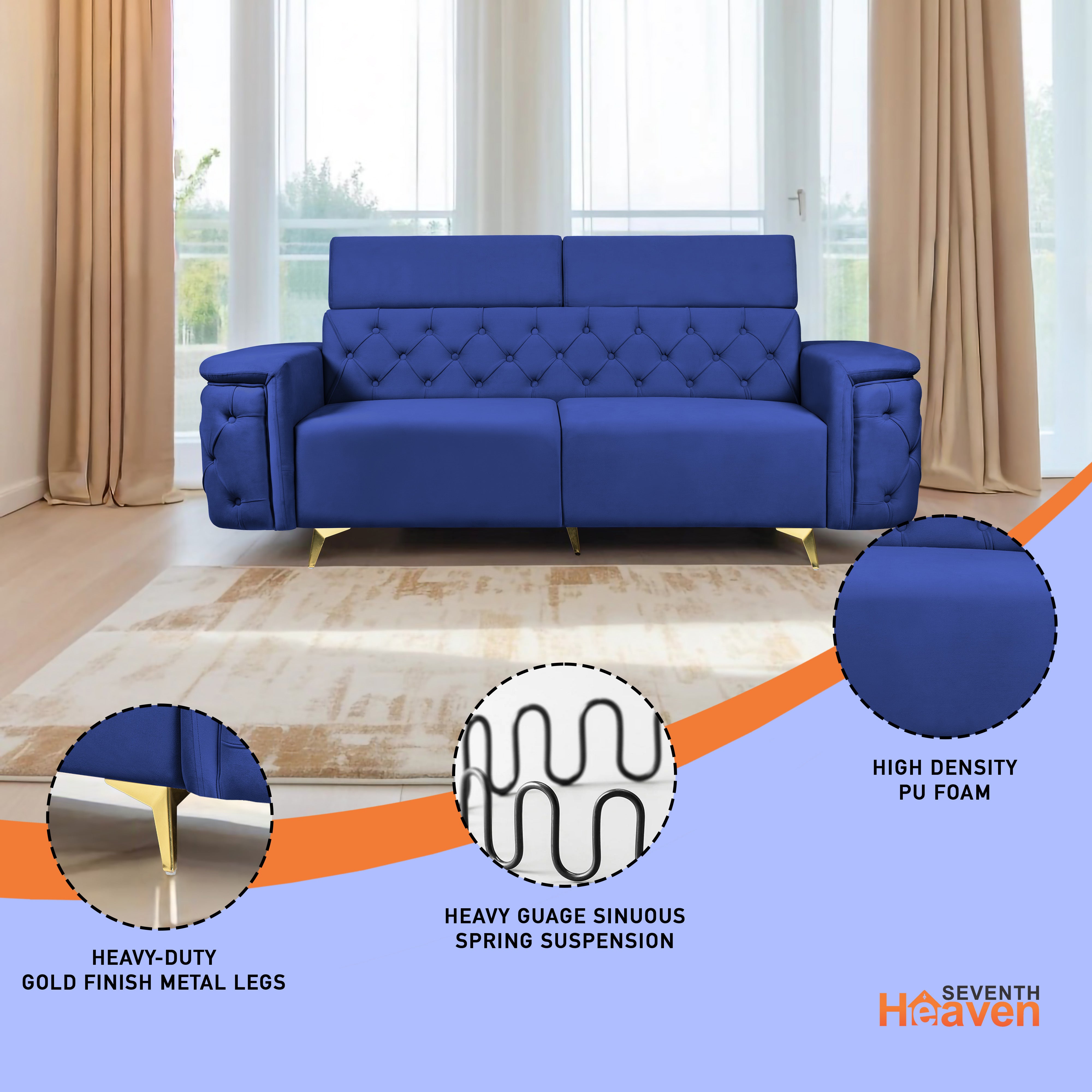 Rome 3 Seater Sofa- ( Plush Suede Fabric- Blue )