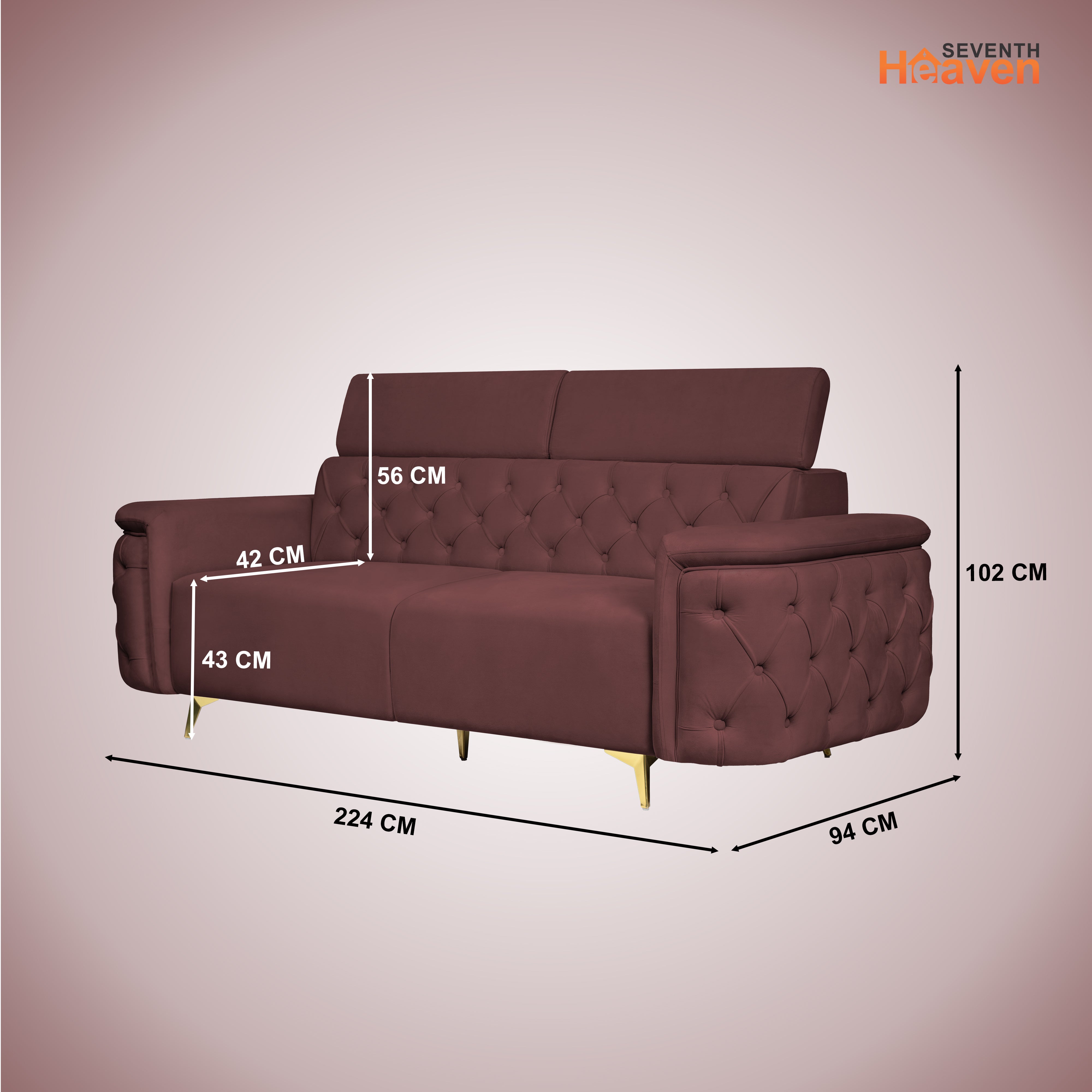Decorate your living room with the Seventh Heaven Rome sofa, a work of art of luxury, comfort, and stylish design that redefines your space with sophistication. Created for maximum relaxation, this Seventh Heaven sofa has a high backrest with adjustable headrest support, providing optimum seating posture and all-day comfort. Upholstered in superior fabric with high-density PU-foam cushioning, it offers the best softness and support. With a sturdy wood frame and standing on royal Metal legs, the Rome Sofa by Seventh Heaven promises stability, longevity, and classic elegance, and is the perfect addition to your home or office.
