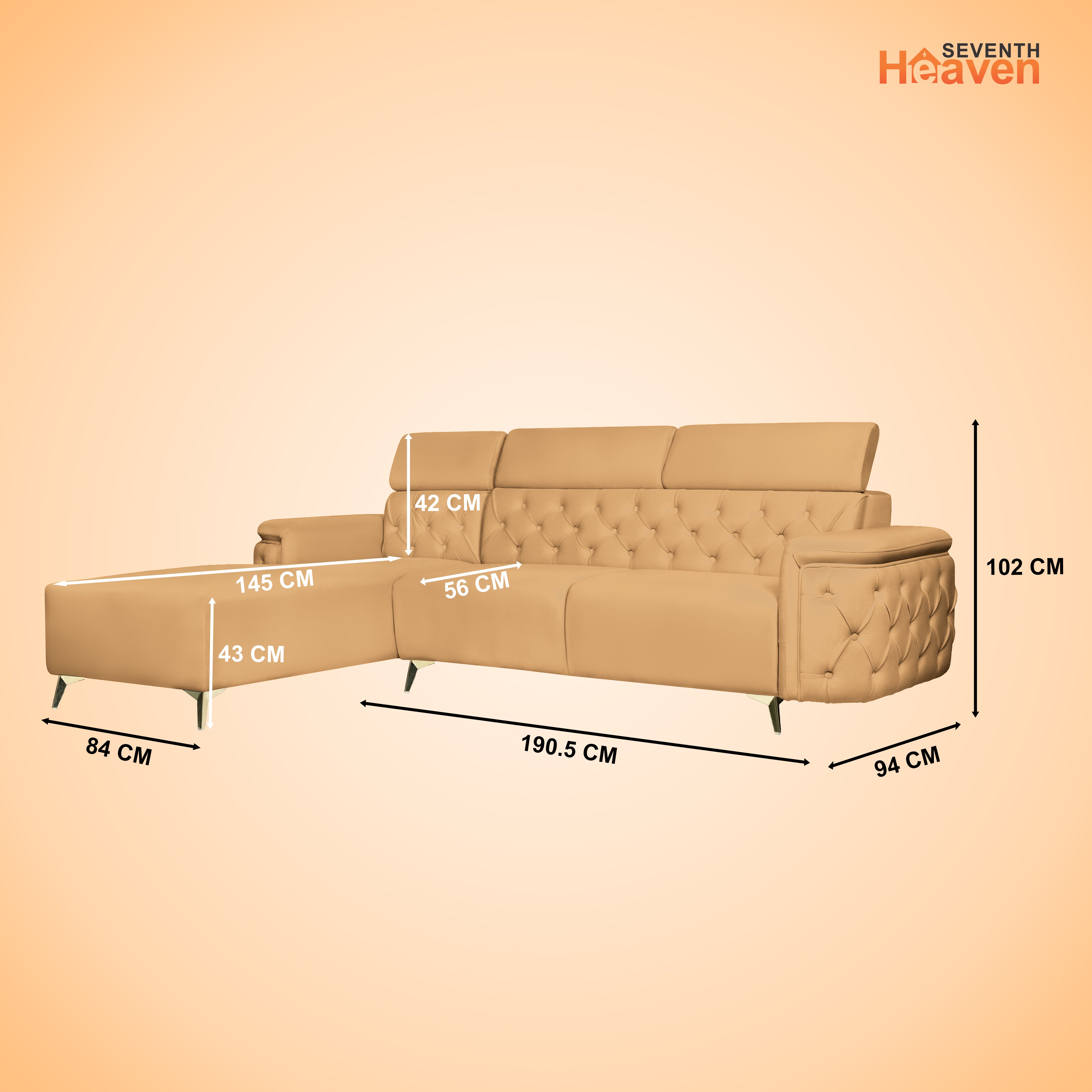 Decorate your living room with the Seventh Heaven Rome sofa, a work of art of luxury, comfort, and stylish design that redefines your space with sophistication. Created for maximum relaxation, this Seventh Heaven sofa has a high backrest with adjustable headrest support, providing optimum seating posture and all-day comfort. Upholstered in superior fabric with high-density PU-foam cushioning, it offers the best softness and support. With a sturdy wood frame and standing on royal Sheesham wooden legs, the Rome Sofa by Seventh Heaven promises stability, longevity, and classic elegance, and is the perfect addition to your home or office.