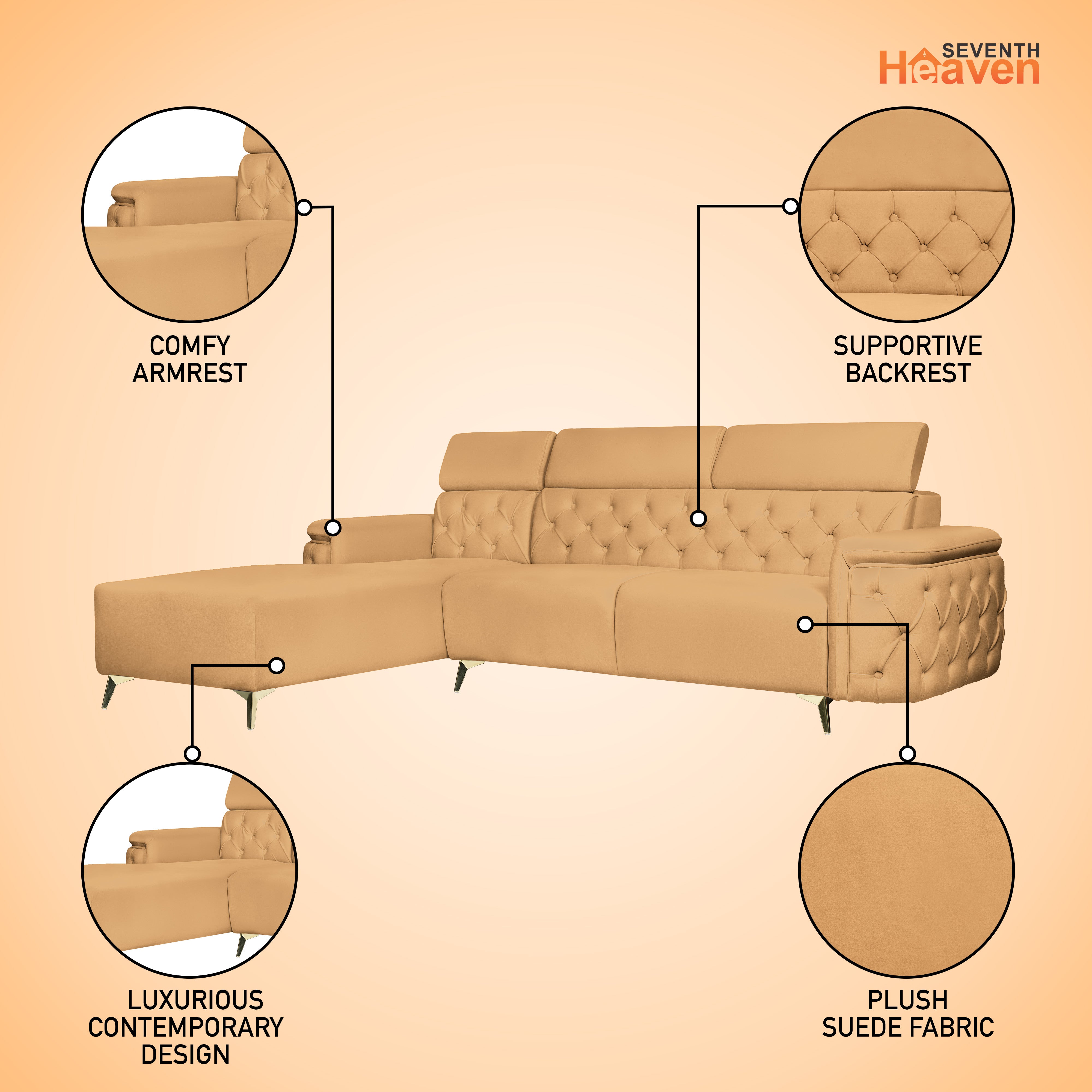 Rome 6 Seater Sofa Set Left Corner- ( Plush Suede - Beige )